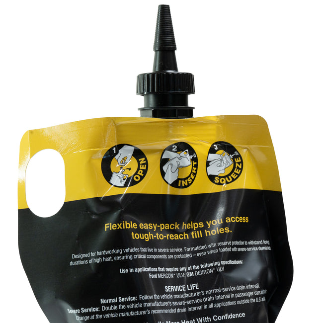 Designed for hard-working vehicles that live in severe service. Handles heat so well, you can confidently double your vehicle manufacturer’s severe-service drain interval with guaranteed AMSOIL protection. AMSOIL Signature Series ULV 100% Synthetic Automatic Transmission Fluid. Comes in the Easy-Pack for less mess and less waste.
