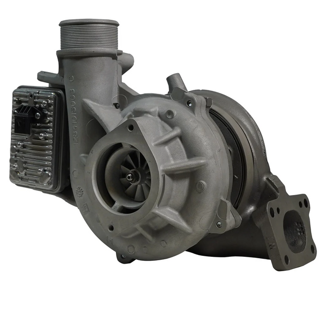This remanufactured turbo is fully cleaned and inspected before having all the seals, piston rings, journal bearings, and mounting hardware replaced. It is high-speed balanced and the actuator is fully tested and calibrated before shipping.