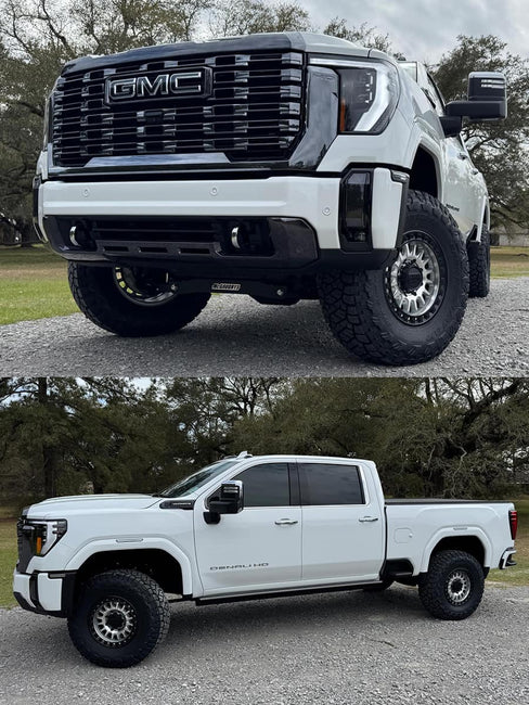 Upgrade the suspension on your 2020+ 2500HD/3500HD L5P Duramax with a McGaughys 4" lift kit. This kit comes in a black powder coat finish and also comes with McGaughys NEW M84 Controlled Shocks.