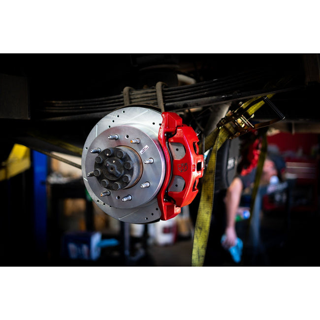 Power Stop brake kits include a complete set of cross-drilled and slotted rotors, red powder coated brake calipers, and D360 extreme performance Carbon-Fiber Infused ceramic pads. The Power Stop brake kit offers more pad bite than other leading brands without noise and dust. Not only do the brake rotors and calipers look great behind stock or custom wheels, they perform better than stock as well! All Components are built and tested to our heavy duty specifications. If you need a fast, easy and affordable solution for better braking and better looks, then you need the Power Stop brake kit. Don’t just stop...Power Stop!