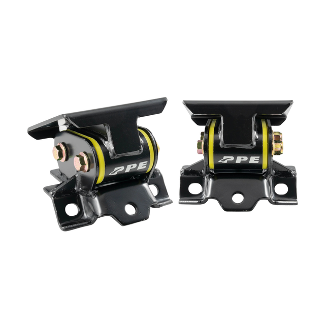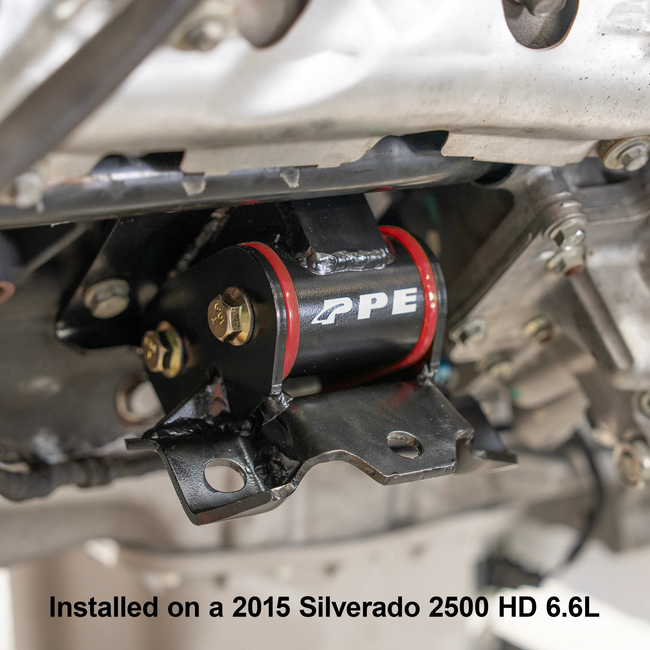 PPE’s Performance Engine Mounts are a no-brainer upgrade for any GMC/Chevrolet HD truck owner seeking superior durability, performance, and reliability. The OEM motor mounts on these trucks were made from cheaply formulated rubber and deteriorate over time, as well as being susceptible to shearing – not ideal for heavy-duty applications. Many HD trucks have worn or sheared engine mounts, resulting in excessive vibration, drivetrain misalignment, and even damage to surrounding components. PPE High-Performance Silicone Engine Mount Kits are completely redesigned to solve the weaknesses of the factory mounts. Available in four different durometers from 40A to 70A, the tear- and compression-resistant silicone bushings are engineered to handle the high heat of the engine bay while isolating vibration much better than the rubber/polyurethane alternatives. They achieve all of this while maintaining an interchangeable, replaceable design to easily fine-tune your setup. The high-strength steel core and larger steel-elastomer contact area reduce the stress on the bushings, ensuring that these mounts will last for the life of your truck while offering unparalleled structural integrity and durability.